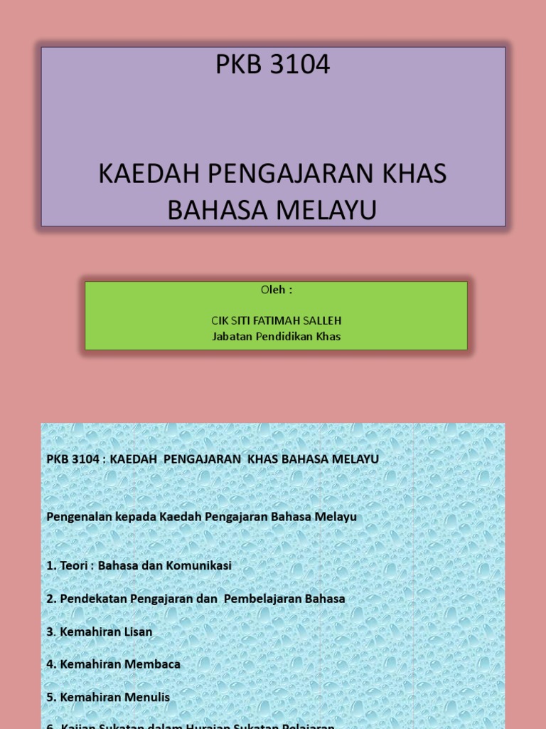 Pengajaran Kemahiran Bahasa Melayu Bmm 3104